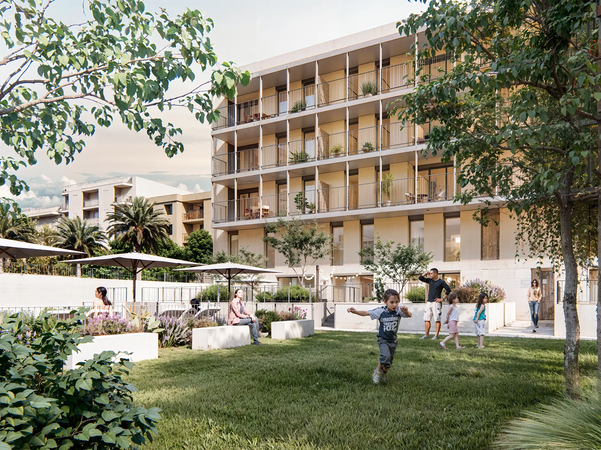 El proyecto incluye bloques residenciales multifamiliares organizados en torno a jardines paisajísticos, piscina y terrazas comunes, ofreciendo a los futuros residentes privacidad y un sentido de comunidad. El lenguaje arquitectónico es limpio y moderno, garantizando que los edificios se integren a la perfección en el tejido urbano existente.